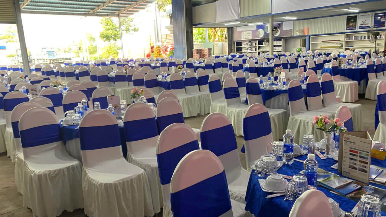 Một không gian bàn tiệc gọn gàng, thẩm mỹ sẽ giúp khách tham dự thoải mái giao lưu, góp phần nâng cao trải nghiệm tổng thể của buổi tiệc.